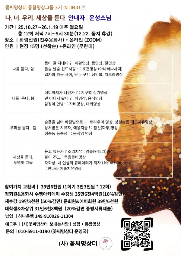 통합명상그룹 3기(운성스님 안내) 첫수업 10.27.월.저녁7시